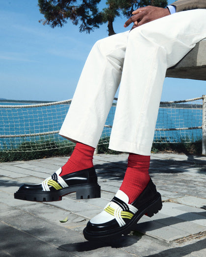 The wave-inspired lines of Otis Carey are subtly expressed through prints, textures and graphic details, blending movement and material on Christian Louboutin’s shoe and bag creations, such as the elegant Miss Z pump, the bold Louis sneaker or the Éloïse bag.
