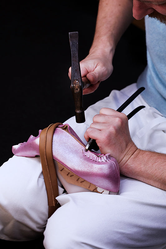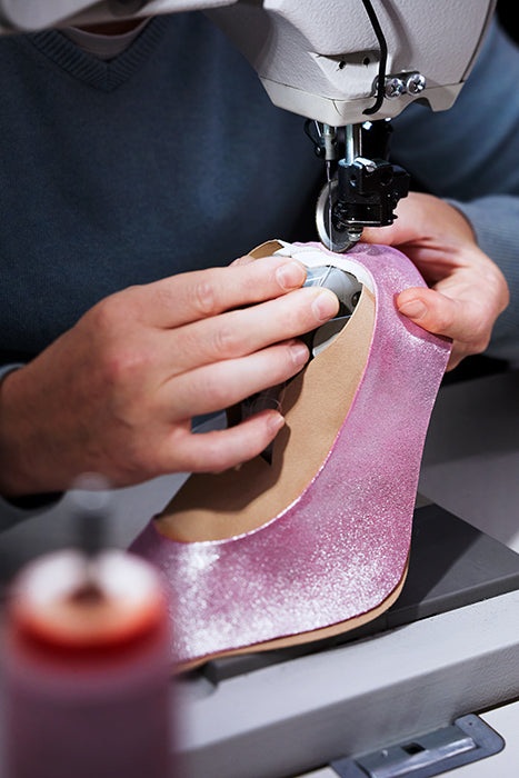 Within 72 hours, the upper must be assembled. It is stretched by hand over the last, each fold gently smoothed to achieve a pure, elegant line. For closed styles, a moistened leather reinforcement is inserted between the lining and the upper, ensuring both structure and suppleness.