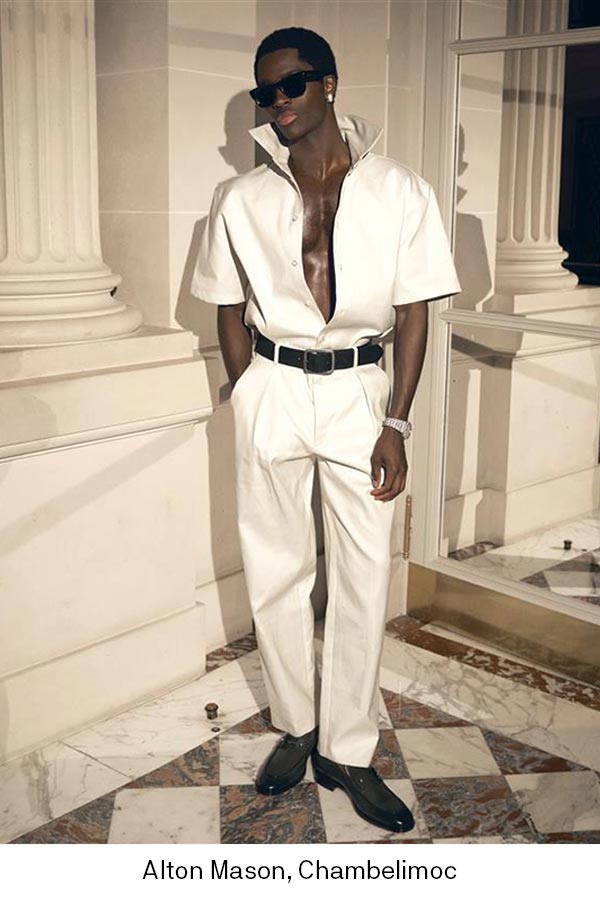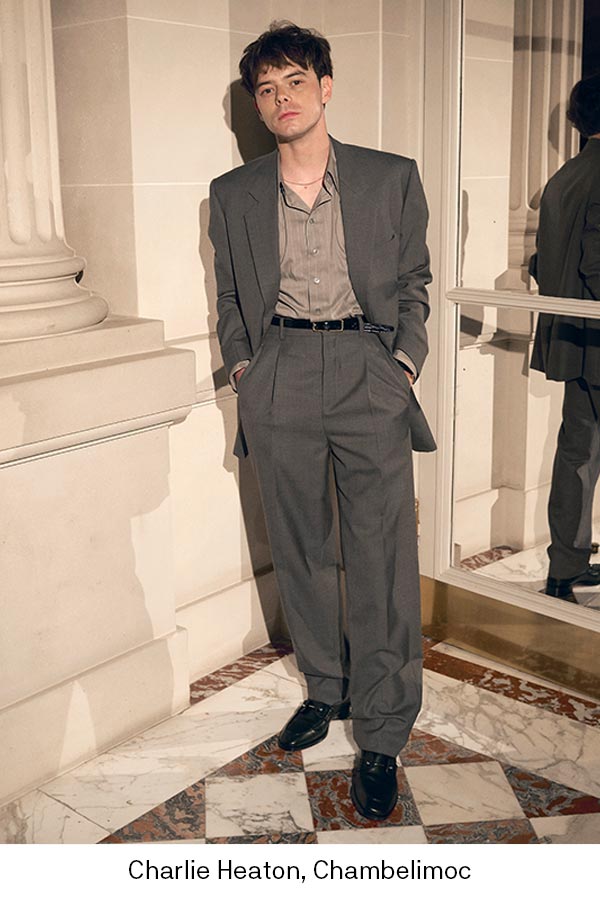 The Chambeliss line takes center stage in the Salon Marie-Antoinette, displayed on a billiard-inspired table. From the original derby to its many variations — including the Chambelimoc, Chambelimonk, and Strass editions — each silhouette combines timeless elegance, impeccable fit, and a signature metal pin inspired by men’s collar jewelry. A refined pairing matches each shoe with a Chambelink pin on a shirt collar, including the rhinestone-set Chambelink Strass. Together, they express a modern reinterpretation of traditional codes.