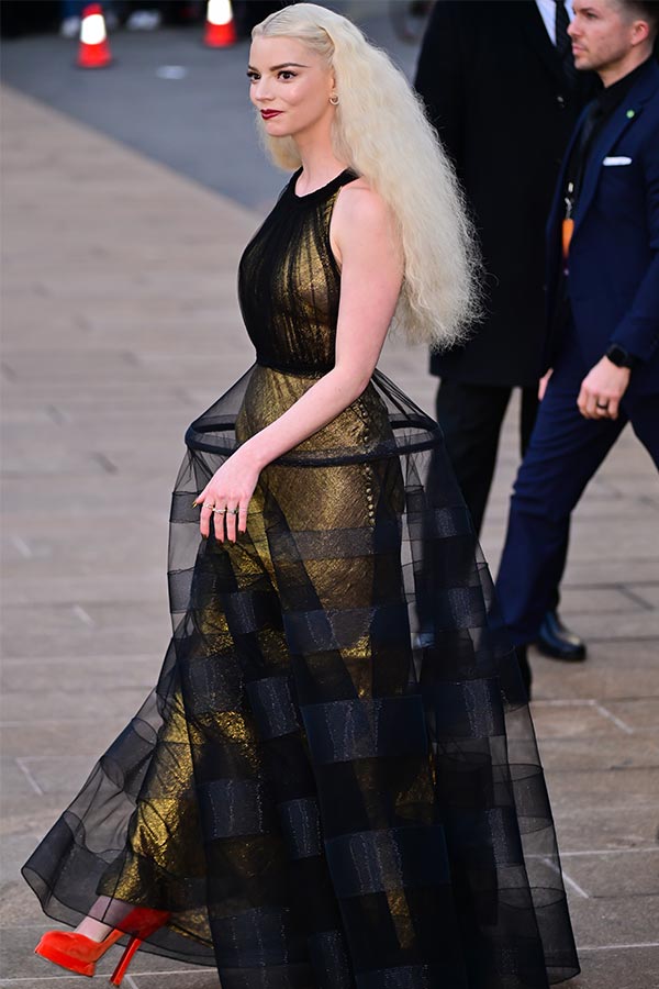 Anya Taylor-Joy attended the New York premiere of Dune: Part Two wearing marmalade velvet Tabi pumps by Christian Louboutin for Maison Margiela. The designs are part of a special collaboration between Christian Louboutin and John Galliano, for the Artisanal 2024 Maison Margiela Collection.