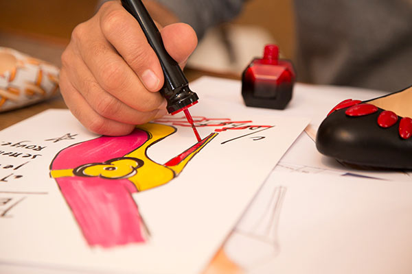 His eyes fell on his assistant, who was applying a vibrant red nail polish. In a spontaneous gesture, he grabbed the bottle and painted the sole from toe to heel. The transformation was immediate—the shoe came to life.