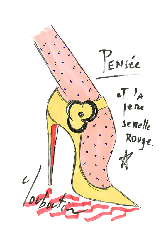 It all began in 1992, in the designer’s Parisian atelier. As he was finalizing the prototype of the Pensée model, Christian Louboutin was captivated by the elegance of the silhouette—but found the black sole too dull, disrupting the harmony of the design.