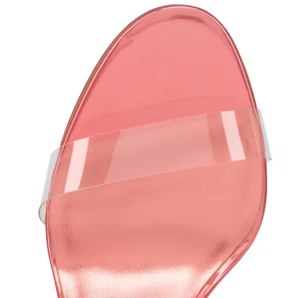 The emblematic Just Nothing mule from Maison Christian Louboutin reveals elegant lines. It has a barely-there upper, and the foot is supported by a slender 85 mm heel. It's secured by two see-through soft TPU straps for a daring, lightweight finish. The sole and heel are crafted from Grapefruit pink laminated calf leather. This model is an e-commerce exclusive.